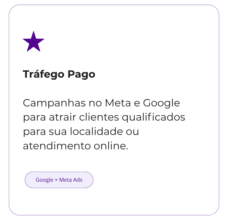 Você construiu uma prática sólida em sua profissão com dedicação e estudo. Só que o mundo digital não sabe disso ainda e entre atender, estudar e se manter atualizado, cuidar do digital acaba sendo sempre a última prioridade. E é exatamente aí que a gente entra.