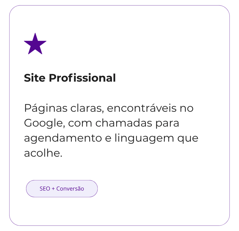 Todos os nossos serviços pensados para pequenas e médias empresas agora com linguagem, estratégia e sensibilidade adaptadas para o universo terapêutico.